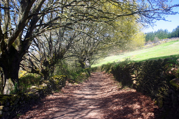 Castromaior. Kein Verkehr, keine Menschen, nur die zwei Barfrauen ein Kleinkind und ich. Sitze draußen. Schöne Bar, dunkler unbeleuchteter Innenraum. Wunderbar kühl nach der heißen, schattenlosen Straße. Ein kleines Stück habe ich mich von einem Traktor mit Gülleanhänger ziehen lassen. Der Bauer fand das aber wohl nicht so lustig. Kleine Beobachtung: alle spanischen Kinder scheinen blond und alle Erwachsenen schwarzhaarig zu sein. Punta la Reia. Letzte Stunde war Wunderschön. Kleine gut asphaltierte Straße. Gelb blühender Ginster rechts und links. Nadelwald und kein Verkehr. Auch kein Kuhmist mehr wohin man blickt. Die Bauern vor ihren Häuslein grüßen freundlich. Sehr viel Lokalkolorit auf diesem Abschnitt, so könnte das vor ein paar hundert Jahren auch schon ausgesehen haben. Aber damals waren sicher mehr Pilger unterwegs als heute. Auf dem letzten Wegstein den ich vor La Reia wahrgenommen habe stand etwas von 60km. Also fast da. Die Pilger früher müssen drei Kreuze gemacht haben wenn sie nach all den Bergen und Hügeln hier ankamen. Ab jetzt geht es fast flach bis Santiago. Neben den Bauernhäusern stehen häufig ein Meter schmale und an die vier Meter lange Häuschen auf Stelzen. Für was die wohl gut sein mögen. Für die Aufbewahrung von Stroh scheinen sie mir ungeeignet. Vielleicht was Sakrales. Der Führer schweigt sich zu dem Thema aus, muss morgen mal jemanden fragen.